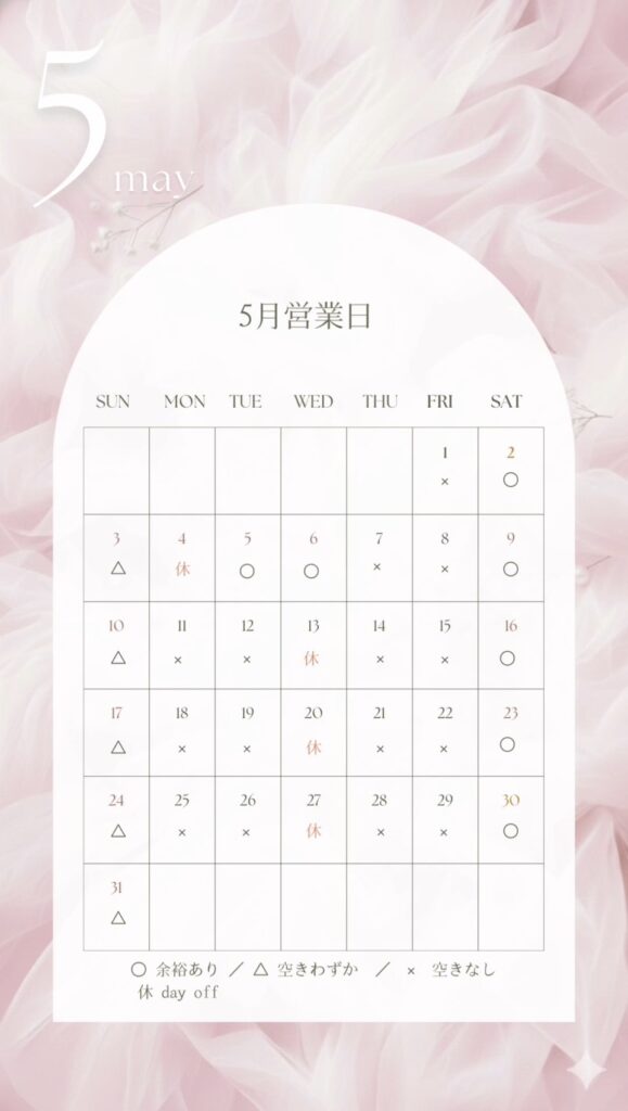 東京のおすすめイメコンサロン♡【DouxReve】2026年5月予約カレンダーお待たせいたしました。 未分類 2026.04.13 東新宿・麻布十番・オンラインで行なっています♡ ゴールデンウィークのご予約はお早めに♡ ———————————————————— 東京にてパーソナルカラー診断・顔タイプ診断・レッスンメイクを行なっています。メイク迷子さんや似合うものがわからない方、ぜひお任せください。 《パーソナルカラー診断・顔タイプ診断サロン》イメージコンサルティングサロンDouxReve【東京・新宿(東新宿)・麻布十番】 Instagramも更新中!@mao.douxreve ご予約はこちらから